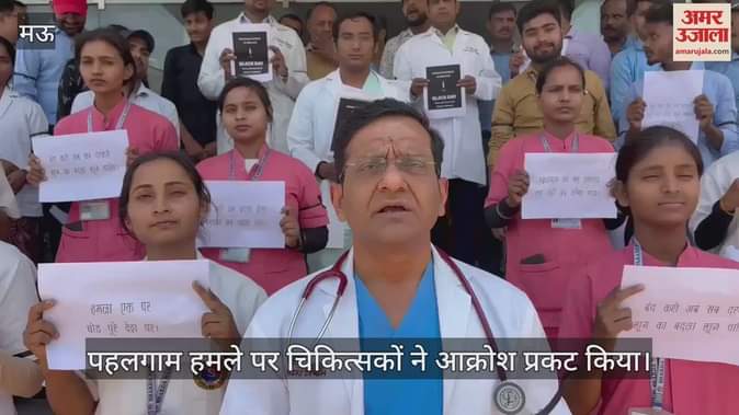 मऊ में चिकित्सकों ने आतंकवाद पर आक्रोश जताया, नारे लगाकर सख्त कार्रवाई की मांग की