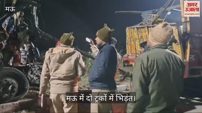 VIDEO : मऊ में दो ट्रकों में भिड़ंत, चालक को झपकी आने से हुई हुआ हादसा