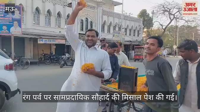 VIDEO : मऊ में होली पर गंगा-जमुनी तहजीब, फूल उड़ाकर दिया आपसी भाईचारे का संदेश, दिखा उत्साह