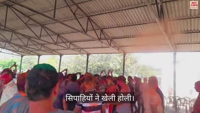 VIDEO : मऊ में सिपाहियों के साथ रंग में सराबोर दिखे एसपी, पुलिस लाइन में मनाई गई होली