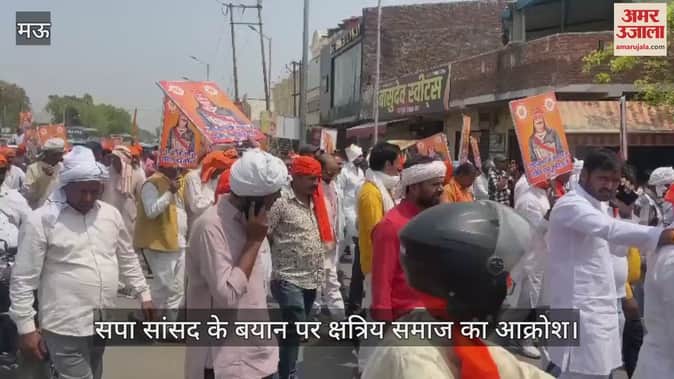 सपा सांसद रामजीलाल सुमन द्वारा राणा सांगा को लेकर दिए गए बयान पर क्षत्रिय समाज में जबरदस्त विरोध है। मऊ नगर में विरोध के रूप में ब्रह्मस्थान से क्षत्रिय समाज के लोग जुलूस निकाल कर कलेक्ट्रेट पहुँचें।जहां पर विरोध सभा शुरू हुई।इस दौरान हज़ारों की संख्या में समाज के लोग जुलूस में शामिल रहे।