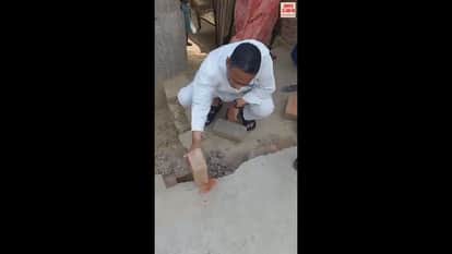 VIDEO : ईंट से मारने पर टूटने लगी निर्माणाधीन आरसीसी रोड, नपाध्यक्ष ने गठित की टीम; मऊ के इस वार्ड का मामला