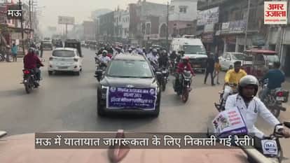 VIDEO : मऊ में निकली यातायात जागरूकता रैली, सड़क सुरक्षा के नियम बताए गए
