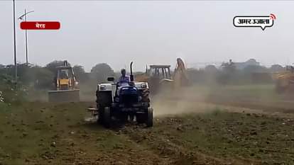 मेरठ में किसानों की लहराती फसल पर प्रशासन ने बुलडोजर चढ़ा दिया। मामला जागृति विहार का है। जहां किसानों से जमीन खाली कराने के लिए बुधवार को प्रशासन की टीम पहुंची। इस दौरान किसानों ने जमकर हंगामा किया।