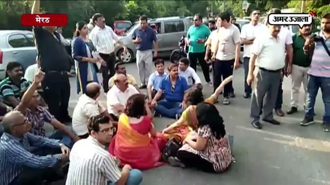 मेरठ में डॉक्टर सत्यप्रकाश अग्रवाल को एसओ ने पीटा, जिसके विरोध में आईएमए के डॉक्टरों ने पुलिस के खिलाफ नारेबाजी की। डॉक्टरों ने थानेदार को हटवाने की मांग करते हुए शनिवार को एसएसपी आवास के सामने धरना प्रदर्शन किया।