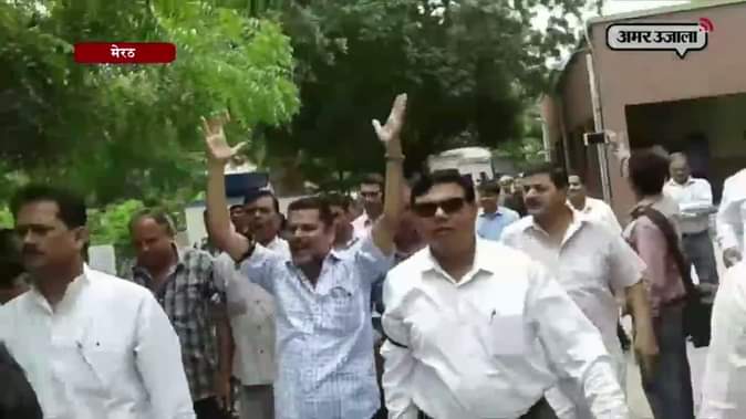 मेरठ में कलेक्ट्रेट के कर्मचारियों ने खूब नारेबाजी की। ये सभी कर्मचारी कमिश्नर के तबादले की मांग कर रहे थे। सभी कर्मचारियों ने सामूहिक अवकाश लेकर डीएम ऑफिस पर प्रदर्शन किया। इस दौरान कलेक्ट्रेट और तहसील दफ्तर में तालाबंदी भी की गई। प्रदर्शन के दौरान डीएम मुर्दाबाद के नारे लगे।