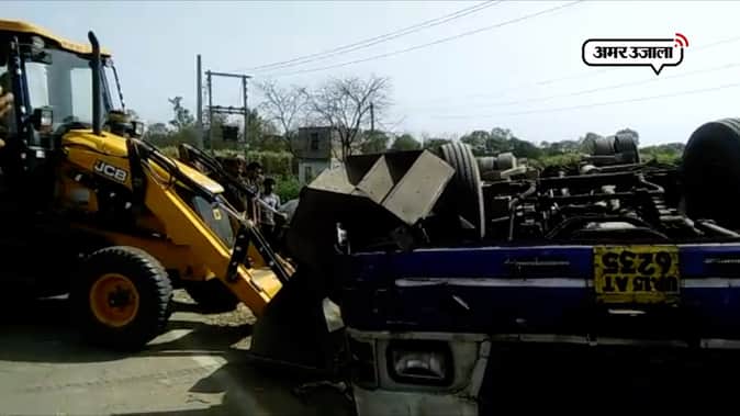 मेरठ में कुछ ऐसे पलट गई यात्री बस, मचा कोहराम