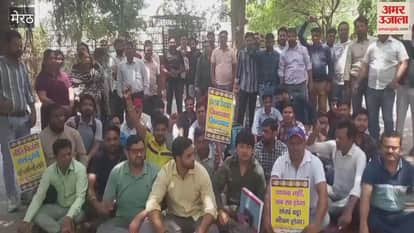 मेरठ में ऊर्जा भवन पर कम्प्यूटर ऑपरेटर्स ने दिया धरना, की नारेबाजी