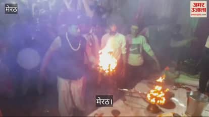 VIDEO : मेरठ के श्री राधा कृष्ण मंदिर शारदा रोड पर बाबा महाकाल की महाआरती में शामिल श्रद्धालु