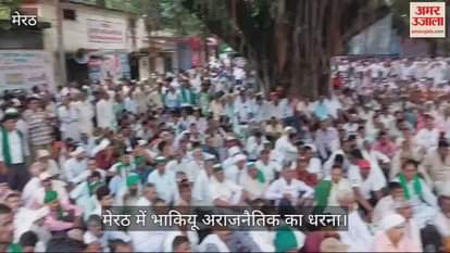 VIDEO : मेरठ में भाकियू अराजनैतिक ने कलेक्ट्रेट पहुंचकर उठाईं किसानों की समस्याएं, दिया धरना