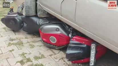 Meerut: A high-speed Eco car and a bike collided in Ganganagar, the bike got stuck under the car, watch the video
