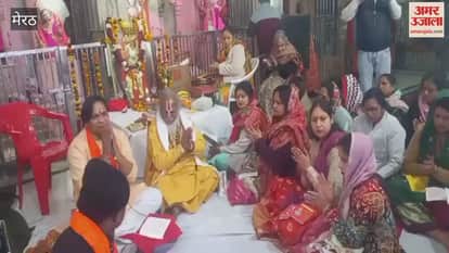 Meerut: वेस्ट एंड रोड स्थित हनुमान मंदिर में जन्मोत्सव कार्यक्रम के दौरान श्रद्धालुओं ने गाए भजन
