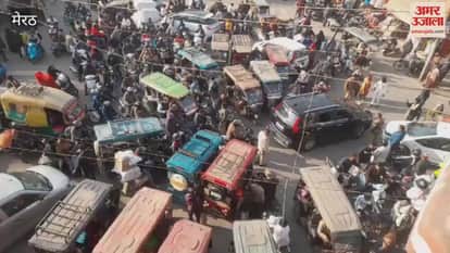 Meerut: घंटाघर चौराहे पर एसपी सिटी कार्यालय के सामने लगा जाम