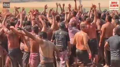 Meerut: पुलिस अधिकारियों ने रंगरूटों के साथ खेली होली, कंधे पर बैठे एसएसपी ने जमकर किया डांस