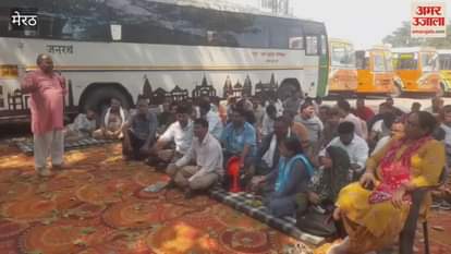 Meerut: रोडवेज बस स्टैंड पर श्रमिक समाज कल्याण संघ द्वारा किया गया धरना प्रदर्शन