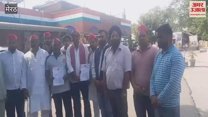 Meerut: कन्नोज में गांधी प्रतिमा हटाने के विरोध में कलक्ट्रेट पर सपा कार्यकर्ताओं का प्रदर्शन