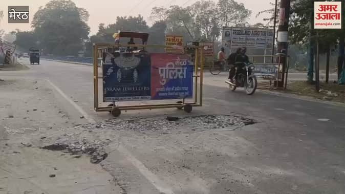 Meerut: हस्तिनापुर के मुख्य मार्ग की सड़क धसने के बाद नहीं हुई दुरुस्त