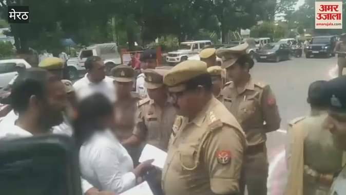 मेरठ में एक तरफ आयुक्त कार्यालय के अंदर प्रमुख सचिव और डीजीपी अधिकारियों के साथ मीटिंग ले रहे थे, तो दूसरी ओर एक महिला कमिश्नरी के बाहर हंगामा करने लगी।