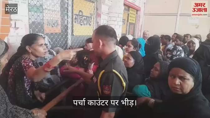 Meerut: जिला अस्पताल के पर्चा काउंटर पर लगी मरीज़ों की भीड़, सुरक्षाकर्मी से भी हुई नोंकझोंक