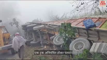 VIDEO : अनियंत्रित होकर पलटा डस्ट से भरा ट्रक, मची चीख-पुकार