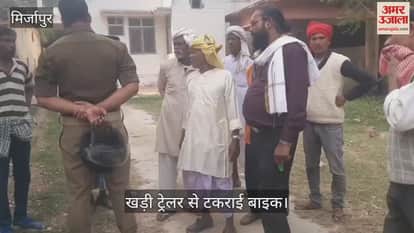 VIDEO : मिर्जापुर में खड़ी ट्रेलर में टकराई बाइक, दो की मौत, दो घायल