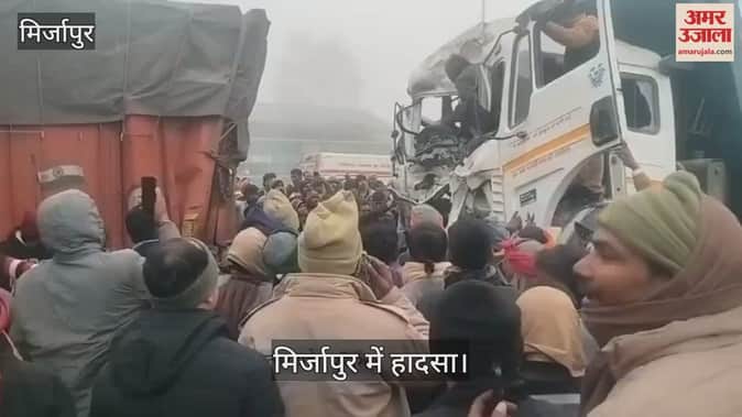 मिर्जापुर में हाइवा के अचानक ब्रेक लगाने पर पीछे से डीसीएम टकराई, VIDEO