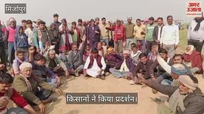 मिर्जापुर में किसानों ने मुआवजे को लेकर किया प्रदर्शन, VIDEO