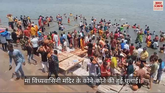 VIDEO : गंगाजल से हुई मां विंध्यवासिनी मंदिर के कोने-कोने की धुलाई, घटाभिषेक के लिए उमड़े श्रद्धालु
