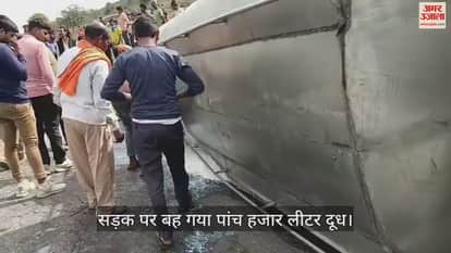 VIDEO : UP: दूध लेकर वाराणसी जा रहा टैंकर अनियंत्रित होकर पलटा, सड़क पर बह गया पांच हजार लीटर दूध; ड्राइवर घायल