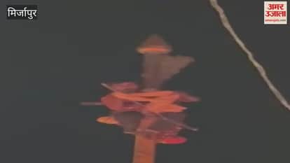 VIDEO : विंध्यवासिनी मंदिर की पताका पर चढ़ा युवक, कड़ी मशक्कत के बाद उतारा गया, हुआ रफूचक्कर; सुरक्षा पर सवाल