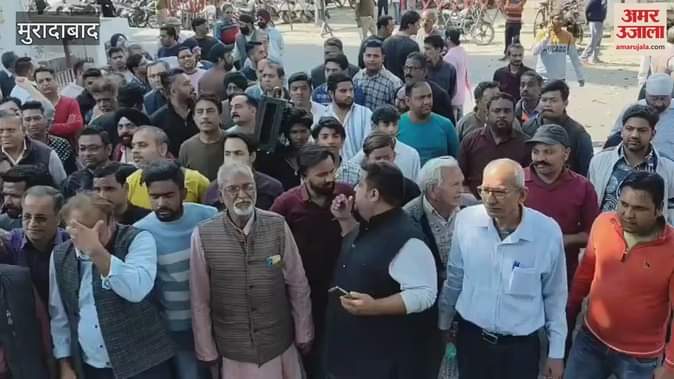 VIDEO : मुरादाबाद में किराया बढ़ाने से नाराज व्यापारियों का प्रदर्शन, नगर निगम के अफसरों का विरोध