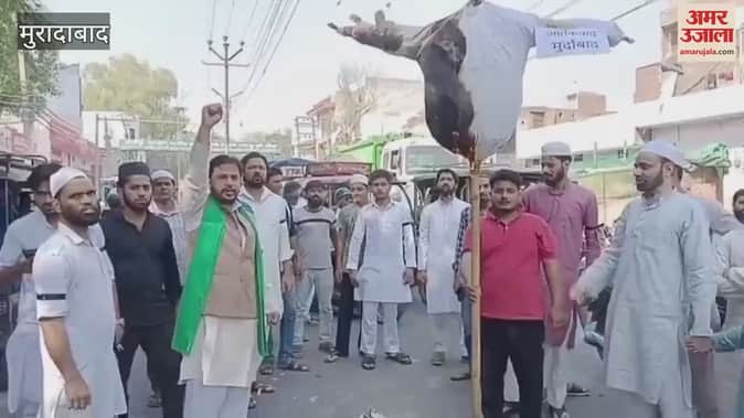 आतंकवाद के खिलाफ मुरादाबाद में फूंका पुतला, पाकिस्तान से रिश्ते तोड़ने की मांग