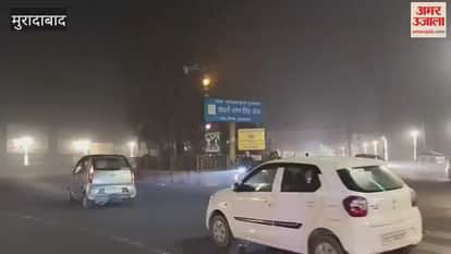 मुरादाबाद में घना कोहरा छाया, दिन में लाइट जलाकर हाईवे पर रेंगते रहे वाहन
