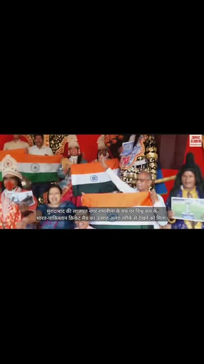 मुरादाबाद की लाजपत नगर रामलीला के मंच पर विश्व कप के भारत-पाकिस्तान क्रिकेट मैच का उत्साह अलग तरीके से देखने को मिला। राम-लक्ष्मण व अन्य पात्र हाथ में तिरंगा झंडा लेकर भारत के जीत की कामना कर रहे थे। लाजपत नगर रामलीला मैदान में भारत की जीत को तय मानते हुए आतिशबाजी के विशेष इंतजाम भी किए गए हैं। रामलीला कमेटी के पदाधिकारी श्याम कृष्ण रस्तोगी का कहना है कि वर्षों बाद बड़े मंच पर भारत व पाकिस्तान की रोमांचक भिड़त हो रही है। इसे लेकर सभी में उत्साह है। उधर अमरोहा में टीम इंडिया के प्रति समर्थन और उत्साह दिखाने के लिए एक चित्रकार ने कोयले से दोनों टीमों के कप्तानों का दीवार पर चित्र तैयार किया है।