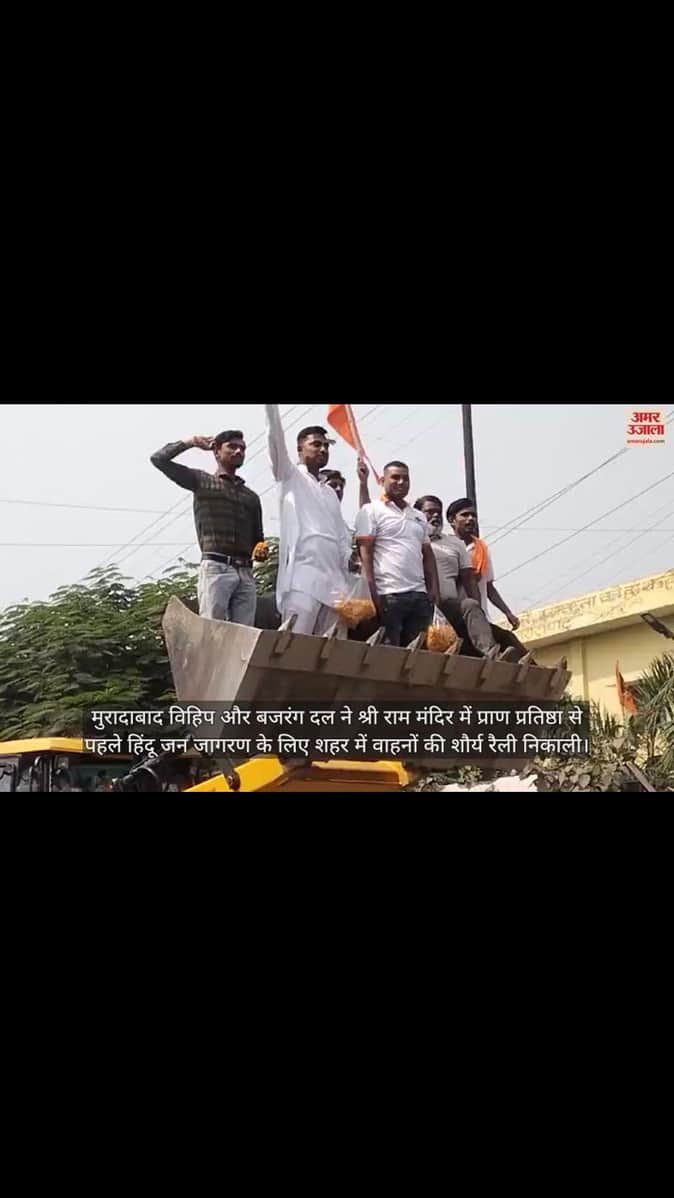 मुरादाबाद विहिप और बजरंग दल ने श्री राम मंदिर में प्राण प्रतिष्ठा से पहले हिंदू जन जागरण के लिए शहर में वाहनों की शौर्य रैली निकाली। रैली का जगह जगह लोगों ने स्वागत किया। विश्व हिंदू परिषद एवं बजरंग दल की मेरठ प्रांत की शौर्य जागरण यात्रा का समापन पंचायत भवन मुरादाबाद में सांस्कृतिक कार्यक्रम के तहत किया गया। सनातन के आराध्य भगवान श्रीराम के भव्य मंदिर के निर्माण के लिए यात्रा रामपुर दोराहे से प्रारंभ होकर प्रेम वंडरलैंड, गुलाबबाड़ी, हनुमान मूर्ति चौराहा, प्रभात मार्केट, डबल फाटक, मिगलानी सिनेमा, रोडवेज, होते हुए इंपीरियल तिराहा से चौक बुध बाजार, दिल्ली रोड होते हुए पंचायत भवन कंपनी बाग पर पहुंची। शौर्य जागरण यात्रा का भव्य स्वागत किया गया। मेरठ महानगर से एक अक्तूबर को शुरू की गई यात्रा 25 जिलों तक पहुंची।