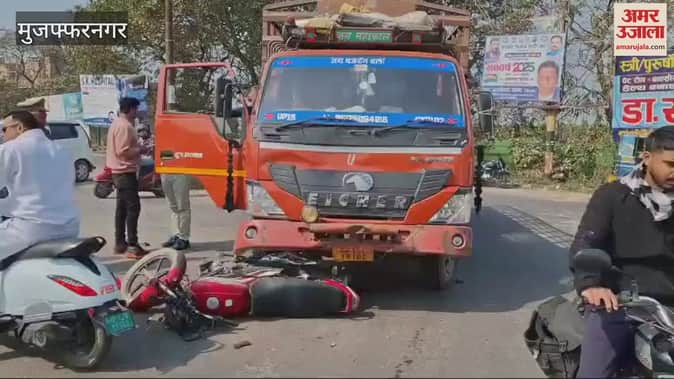 VIDEO : मुजफ्फरनगर: हाईवे पर कैंटर ने बाइक में मारी टक्कर, कई मीटर तक घसीटा