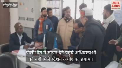 VIDEO : पीलीभीत में ज्ञापन देने पहुंचे अधिवक्ताओं को नहीं मिले स्टेशन अधीक्षक, हंगामा