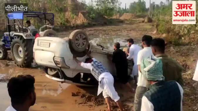 Pilibhit News: सड़क पर कीचड़ में फिसलकर कार पलटी, तीन लोग घायल