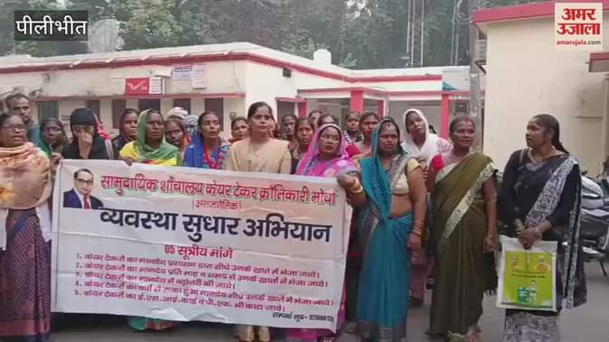 Pilibhit News: समय पर नहीं मिल रहा मानदेय, सामुदायिक शौचालय केयर टेकरों ने किया विरोध प्रदर्शन