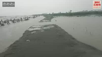 पीलीभीत में शारदा नदी उफनाने से तटबंध क्षतिग्रस्त.... खेतों में भरा पानी