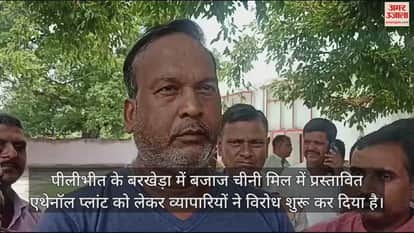 VIDEO : पीलीभीत के बरखेड़ा में एथेनॉल प्लांट के विरोध में उतरे व्यापारी, बोले- प्लांट लगने से होगा प्रदूषण