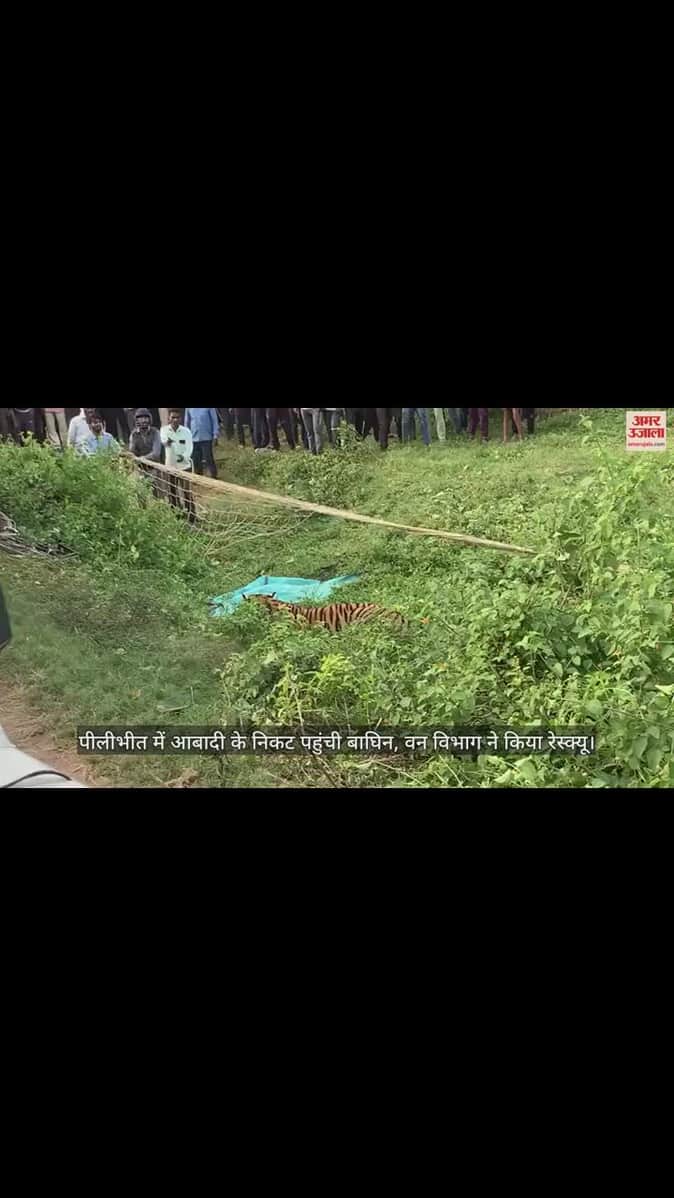 VIDEO : पीलीभीत में आबादी के निकट पहुंची बाघिन, गांव में फैली दहशत, वन विभाग ने किया रेस्क्यू