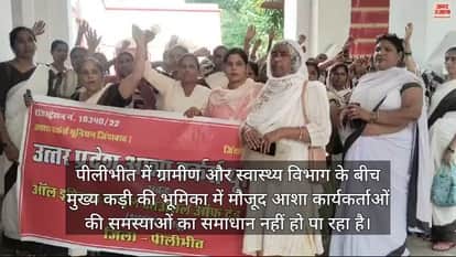 VIDEO : पीलीभीत में आशा कार्यकर्ताओं ने किया प्रदर्शन, 25000 रुपये मानदेय और राज्य कर्मचारी का दर्जा देने की मांग