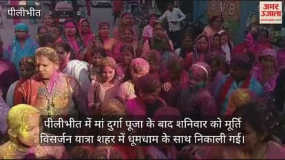 VIDEO : पीलीभीत में भक्तों ने मां दुर्गा को दी विदाई, धूमधाम से निकाली मूर्ति विसर्जन यात्रा