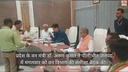 प्रदेश के वन मंत्री डॉ. अरुण कुमार ने पीलीभीत जनपद में मंगलवार को वन विभाग की समीक्षा बैठक की। उन्होंने वन क्षेत्र में चल रहे विकास कार्यों को जानकारी ली। इस दौरान अपर मुख्य सचिव मनोज सिंह ने फसल कटने के दौरान वनकर्मियों को तैनात करने के निर्देश दिए।