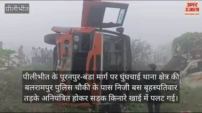 पीलीभीत के पूरनपुर-बंडा मार्ग पर घुंघचाई थाना क्षेत्र की बलरामपुर पुलिस चौकी के पास निजी बस बृहस्पतिवार तड़के अनियंत्रित होकर सड़क किनारे खाई में पलट गई। हादसे में 20 से अधिक मजदूर घायल हो गए। इनमें तीन मजदूरों की हालत गंभीर है। तीनों को जिला अस्पताल रेफर किया गया है। अन्य मजदूरों का सीएचसी में उपचार कराया गया।