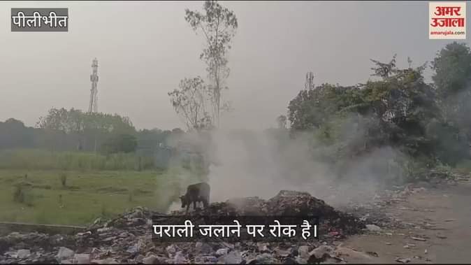 VIDEO : पराली पर जलाने रोक... पीलीभीत में सड़कों के किनारे चल रहा नगर पालिका का कूड़ा