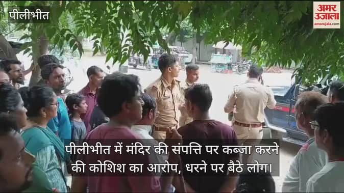 पीलीभीत में मंदिर की संपत्ति पर कब्जा करने की कोशिश का आरोप, धरने पर बैठे लोग