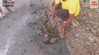 Pilibhit: मानक विहीन कार्य भड़के ग्रामीण, 50 मीटर तक सड़क उखाड़ी