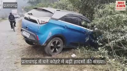 प्रतापगढ़ में घने कोहरे में बढ़ीं हादसों की संख्या, बेकाबू कार पेड़ से टकराई
